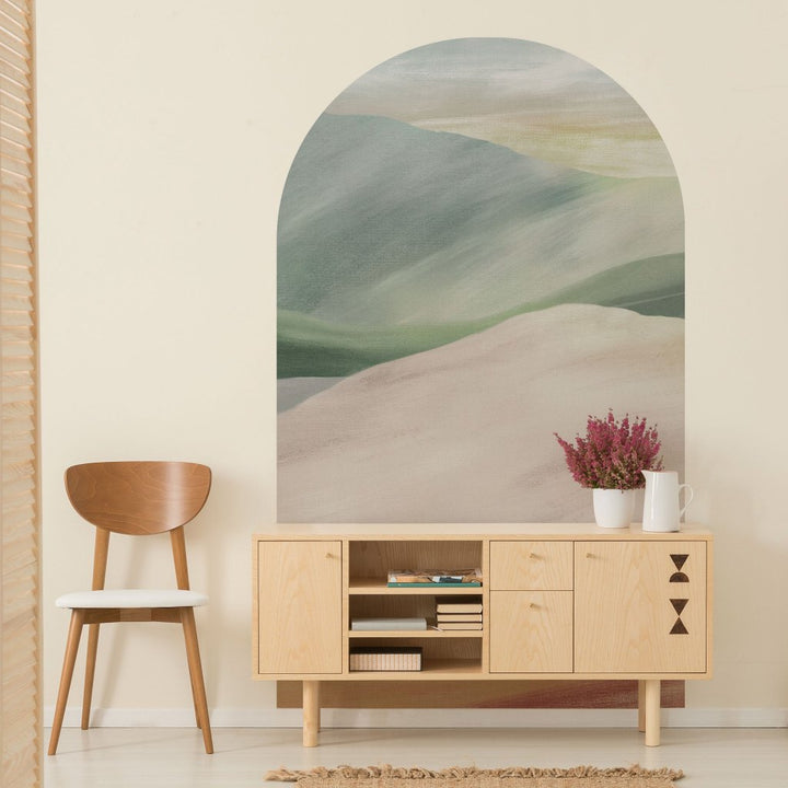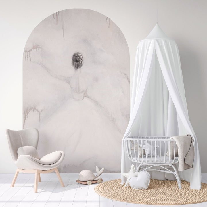 Nasza tapeta w formie łuku ma szerokość 130 cm i wysokość 250 cm – to gotowy, precyzyjnie zaprojektowany element dekoracyjny, który możesz zastosować bez żadnych przeróbek czy skomplikowanego montażu. Wydrukowana jest na samoprzylepnym, zmywalnym materiale o subtelnej strukturze płótna, który z łatwością przykleisz samodzielnie nie tylko na ścianie, ale też na meblach, szkle czy innej gładkiej powierzchni.