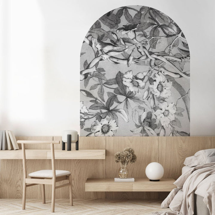 Nasza tapeta w formie łuku ma szerokość 130 cm i wysokość 250 cm – to gotowy, precyzyjnie zaprojektowany element dekoracyjny, który możesz zastosować bez żadnych przeróbek czy skomplikowanego montażu. Wydrukowana jest na samoprzylepnym, zmywalnym materiale o subtelnej strukturze płótna, który z łatwością przykleisz samodzielnie nie tylko na ścianie, ale też na meblach, szkle czy innej gładkiej powierzchni.