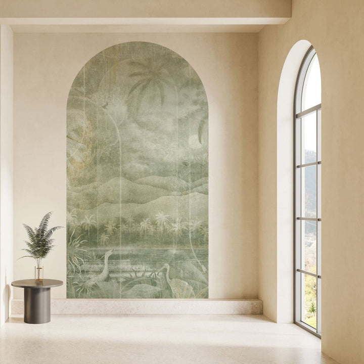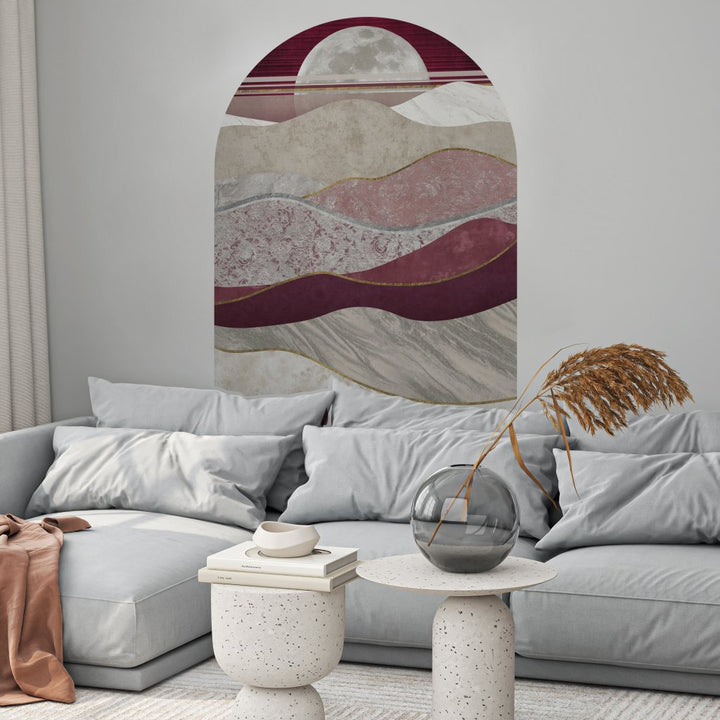 Nasza tapeta w formie łuku ma szerokość 130 cm i wysokość 250 cm – to gotowy, precyzyjnie zaprojektowany element dekoracyjny, który możesz zastosować bez żadnych przeróbek czy skomplikowanego montażu. Wydrukowana jest na samoprzylepnym, zmywalnym materiale o subtelnej strukturze płótna, który z łatwością przykleisz samodzielnie nie tylko na ścianie, ale też na meblach, szkle czy innej gładkiej powierzchni.