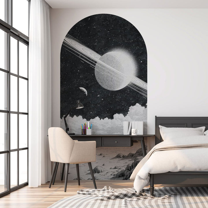Nasza tapeta w formie łuku ma szerokość 130 cm i wysokość 250 cm – to gotowy, precyzyjnie zaprojektowany element dekoracyjny, który możesz zastosować bez żadnych przeróbek czy skomplikowanego montażu. Wydrukowana jest na samoprzylepnym, zmywalnym materiale o subtelnej strukturze płótna, który z łatwością przykleisz samodzielnie nie tylko na ścianie, ale też na meblach, szkle czy innej gładkiej powierzchni.