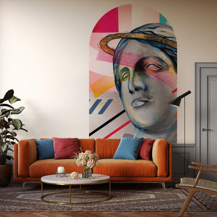 Nasza tapeta w formie łuku ma szerokość 130 cm i wysokość 250 cm – to gotowy, precyzyjnie zaprojektowany element dekoracyjny, który możesz zastosować bez żadnych przeróbek czy skomplikowanego montażu. Wydrukowana jest na samoprzylepnym, zmywalnym materiale o subtelnej strukturze płótna, który z łatwością przykleisz samodzielnie nie tylko na ścianie, ale też na meblach, szkle czy innej gładkiej powierzchni.