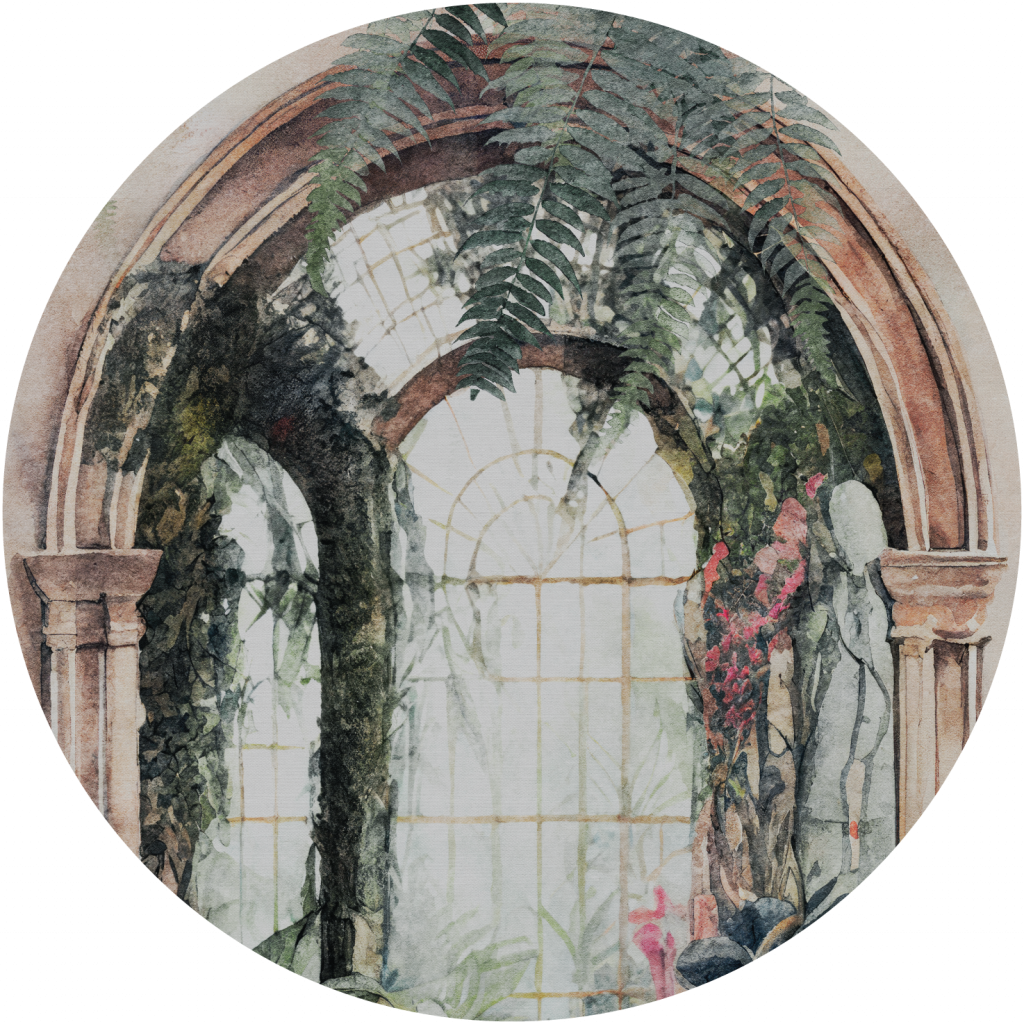 Aranciera to fuzja dwóch motywów, które od lat królują w wystroju wnętrz: roślin i łuków. Wzór przedstawia tajemniczą oranżerię, w której bujna roślinność niemalże całkowicie zdominowała przestrzeń. Antyczne łuki i kolumny dodają głębi i trójwymiarowości optycznie powiększając pomieszczenie. Zgaszona kolorystyka dodaje elegancji i lekkości, a nieco rozmyta technika akwareli- finezji.