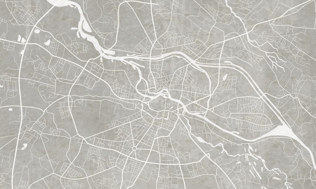 Breslau to grafika przedstawiająca plan miasta Wrocław, ukazując urbanistyczny układ miasta. Na pierwszym planie widoczna jest gęsta sieć ulic, alei i dróg, które tworzą skomplikowany wzór łączący różne części miasta. Najbardziej charakterystycznym punktem na planie jest Stare Miasto, zaznaczone wyraźnie w centrum. Breslau, dzięki zastosowaniu ograniczonej liczby kolorów jest bardzo nowoczesnym wzorem idealnym do biur, restauracji czy innych przestrzeni użyteczności publicznej.