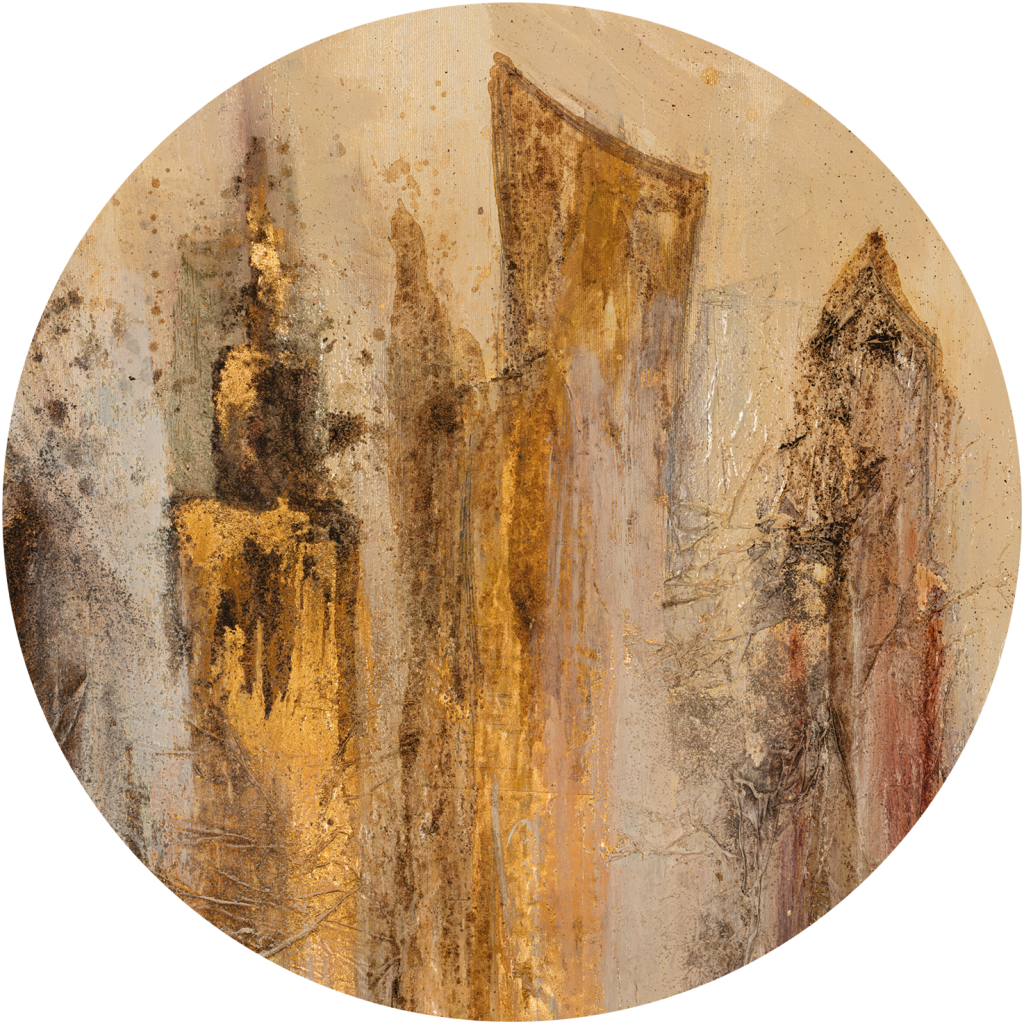 Tapeta „Capital” to pełna ekspresji kompozycja inspirowana wielkomiejską energią, monumentalną architekturą i siłą pionowych struktur. Przypomina artystyczną interpretację panoramy metropolii – wieżowce zbudowane z faktur, kolorów i śladów pędzla zdają się wyrastać z głębokiego tła niczym miasto budowane z emocji. Wzór, mimo dynamicznego charakteru, zachowuje elegancję i wyrafinowanie – dzięki ręcznemu wykonaniu i wyczuwalnej głębi materiału.