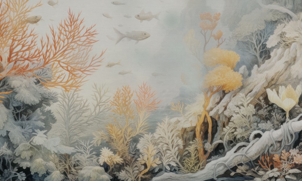 Corallium to długo oczekiwany wzór z motywem podwodnego świata. Dzięki zastosowaniu stonowanej, pastelowej kolorystyki, krajobraz z głębin ciepłego morza nie jest nachalny i w bardzo delikatny sposób wprowadzi do wnętrza spokój jaki daje obcowanie z podwodną naturą.
