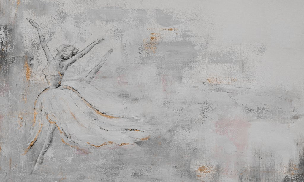Ethereal - delikatna, lekka, kobieca, zmysłowa, elegancka, eteryczna, pełna gracji - taka według nas jest baletnica. Śliczny wzór od Madebybugaj można określić każdym z tych przymiotników. Postać tańczącej kobiety, w zwiewnej sukience, na delikatnym biało- szarym tle, ulotna i nieuchwytna, udekorowana barwami złota.