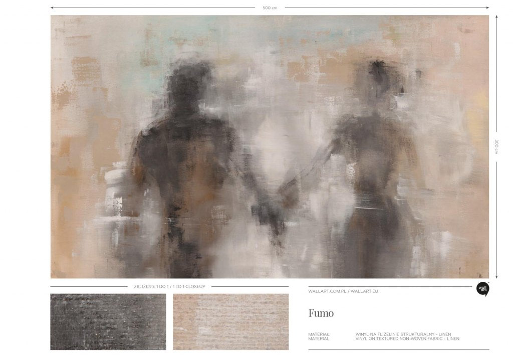 Fumo to abstrakcyjna interpretacja szczęścia jakie może dawać relacja z drugim człowiekiem. Mgliste, nieprzeniknione postaci zmierzające w tym samym kierunku powodują uczucie zamyślenia i nostalgii. Połączenie brązów, szarości i tajemniczego motywu wprowadzi do wnętrza spokój i wyjątkowy nastrój.