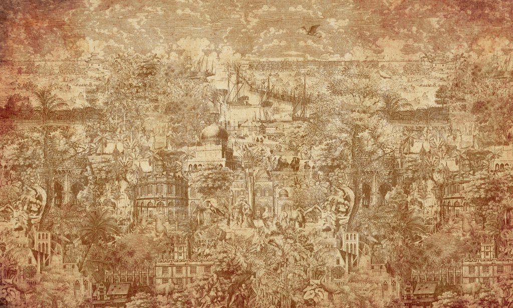 Gulliver Rust jest wzorem mogącym przyprawić o zawrót głowy. Drobiazgowa rycina nadmorskiego miasta kryje w sobie niezliczone detale, które każdego dnia możemy odkrywać go na nowo. Szczegóły architektoniczne, botaniczne, postaci ludzi i zwierząt, to wszystko znajdziemy na tym niezwykle złożonym dziele. Kolorystyka przywodząca na myśl stare ryciny i fotografie w odcieniu sepii, nada wnętrzu szlachetny charakter. Gulliver będzie świetnym dopełnieniem koniakowych, skórzanych mebli.