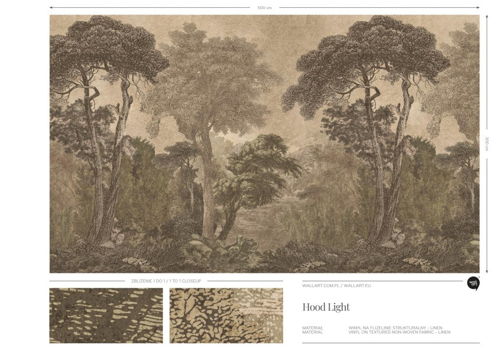 Otoczeni przez rozrastającą się miejską dżunglę, poszukujemy azylu we własnych domach, tworząc przestrzenie zbliżające nas do przyrody. Hood wprowadzi do wnętrza las w niezwykle eleganckim, nieco kolonialnym wydaniu. Widok nawiązujących do starych rycin przedstawia dziki, niezbrukany ludzką ręką starodrzew. Mieszanka różnych odcieni brązu kojarzy się nieco z fotografiami w sepii, tworząc klimat egzotycznego wnętrza z nutką wiktoriańskiej elegancji. Perspektywa uchwycona w pejzażu sprawi, że wnętrze nabierze głębi i optycznie się powiększy.