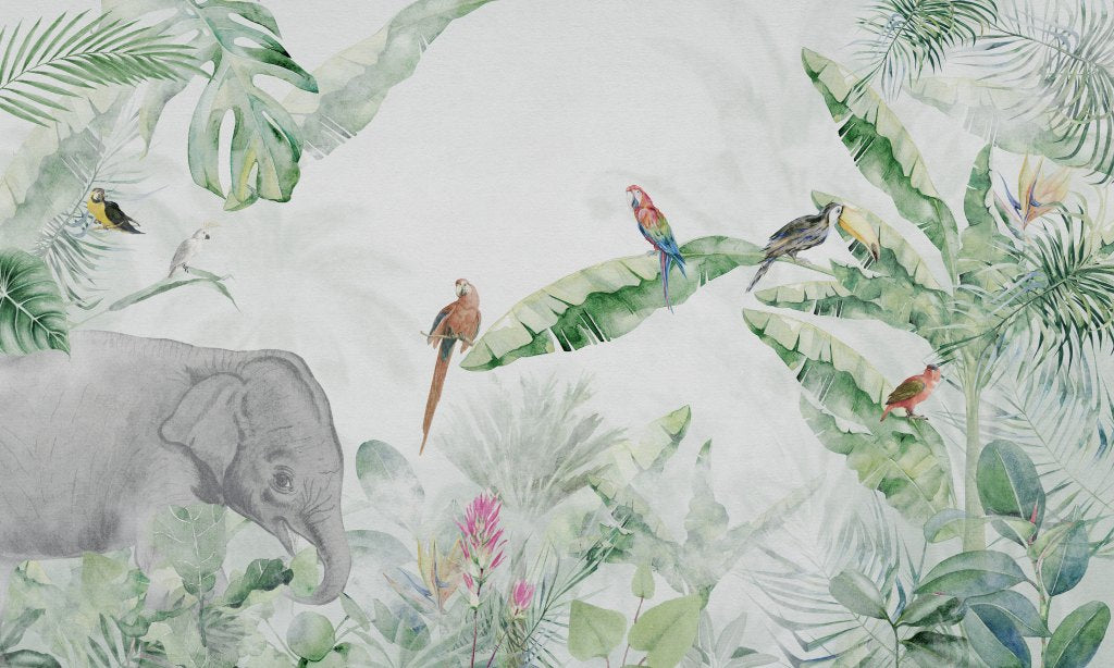 Nowa odsłona bestsellerowego wzoru Jungle, przygotowana w żywych kolorach na jasnym tle. Dominuje kolor soczystej zieleni, oraz żywych barw przyrody tropikalnej. Idealna do każdego rodzaju pomieszczeń.