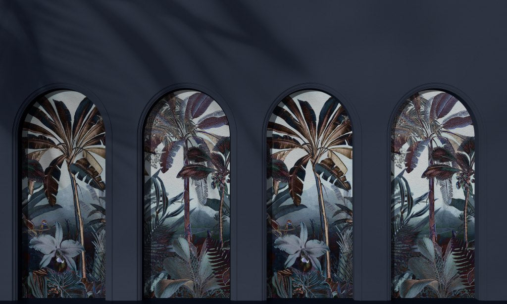 Z kolei Robinson Crusoe to kultowa powieść podróżniczo-przygodowa opowiadająca o latach spędzonych na bezludnej wyspie. Zainspirowani historią Robinsona stworzyliśmy wzór jego imienia, nieco mroczny, tajemniczy, ale jednocześnie egzotyczny. Wysokie palmy optycznie podwyższą pomieszczenie, a niekonwencjonalna kolorystyka wzoru umożliwi skomponowanie go we wnętrzach, w których nie chcemy używać zieleni. Robinson to wzór, którego pierwszy plan jest mocny, przyciągający wzrok, który zyskuje lekkość poprzez drugi plan i widok zamglonych gór.