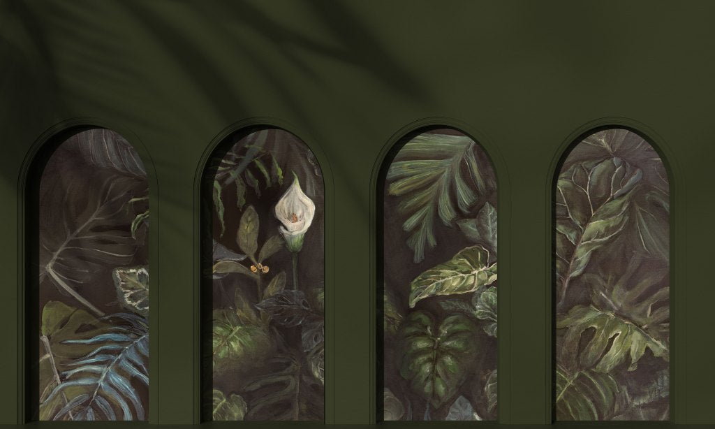 Calla to wzór namalowany ręcznie przez Annę Kowalczyk, twórczynie Kolekcji Arte Annowa. Kalia uważana jest za kwiat szlachetny, dodający pozytywnej energii i wyciszający. Popularne wciąż motywy tropikalnych liści, przełamane zostały delikatnością i szlachetnością białej Kalli. Obraz został przedstawiony w nowoczesnej formie tapety wielkoformatowej. Wzór przygotowany jest w barwach butelkowej zieleni, miejscami przełamany bielą kwiatów co idealnie wpisuje się w aktualne trendy designu.