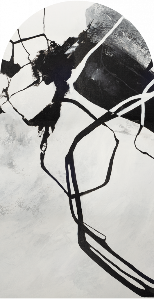 „Memphis” to kompozycja oparta na dynamicznych, ręcznie malowanych liniach tworzących organiczne, nieregularne formy. Przeplatające się kontury przypominają struktury minerałów lub pęknięcia w marmurze, a zarazem zachowują lekkość i ekspresję spontanicznego gestu. Wzór emanuje ruchem i rytmem, który przyciąga uwagę, ale nie przytłacza przestrzeni.