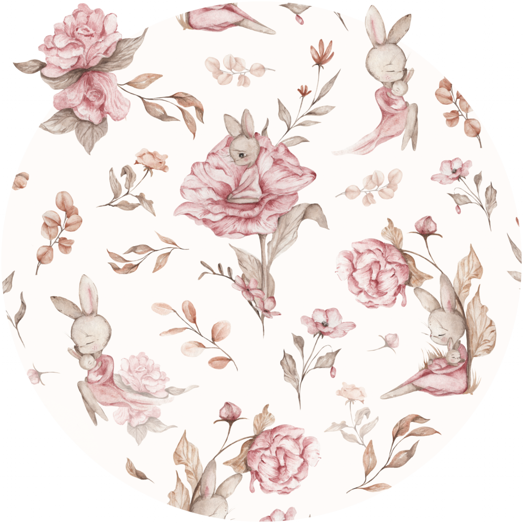 Mimi to dziecięca interpretacja tapety w stylu angielskim. Finezyjnie narysowane kwiaty w połączeniu z uroczymi króliczkami stanowią jednocześnie uroczą, ale i wyrafinowaną dekorację dziecięcego pokoju. Przedstawienie elementów zielonych roślin w wersji beżowej ułatwia wkomponowanie zarówno białych jak i drewnianych mebli.