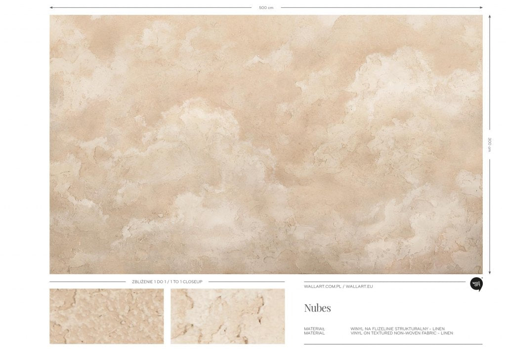 Nubes to bardzo subtelny wzór w odcieniach beżu i kremu, która przypomina delikatne, rozmyte chmury. Całość ma miękki, organiczny charakter, dzięki czemu wygląda bardzo naturalnie i uspokajająco. Taka kompozycja jest idealna do wnętrz, które mają na celu stworzenie ciepłej, przytulnej atmosfery. Nubes świetnie sprawdzi się jako tapeta w salonie, sypialni czy jadalni, nadając pomieszczeniom delikatny, ale elegancki wygląd. Może być również użyty jako dekoracyjny panel na jednej ze ścian, stanowiąc subtelne tło dla mebli i dodatków. Jego neutralna kolorystyka sprawia, że łatwo wpasuje się w różnorodne style aranżacyjne, od klasycznego po nowoczesny.