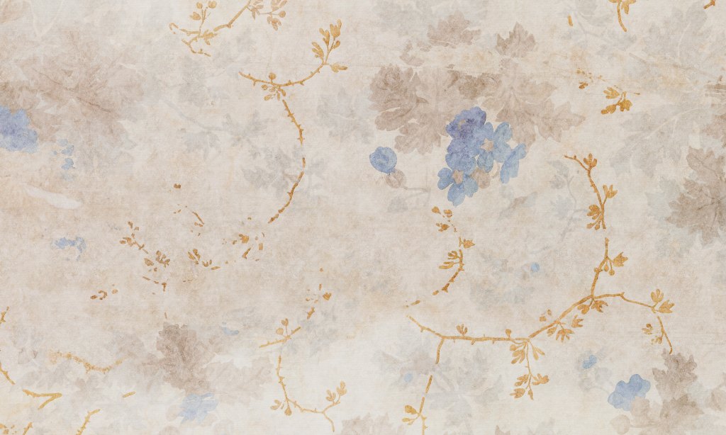 Origin to wzór inspirowany sztuką, w kolekcji Nature. Malownicze kwiaty - niezapominajki z delikatnymi łodyżkami i pączkami liści, w stonowanych barwach kremu i beżu, przełamane zgaszonym niebieskim, z detalami w barwach złota, ozdobią niejedno wnętrze.