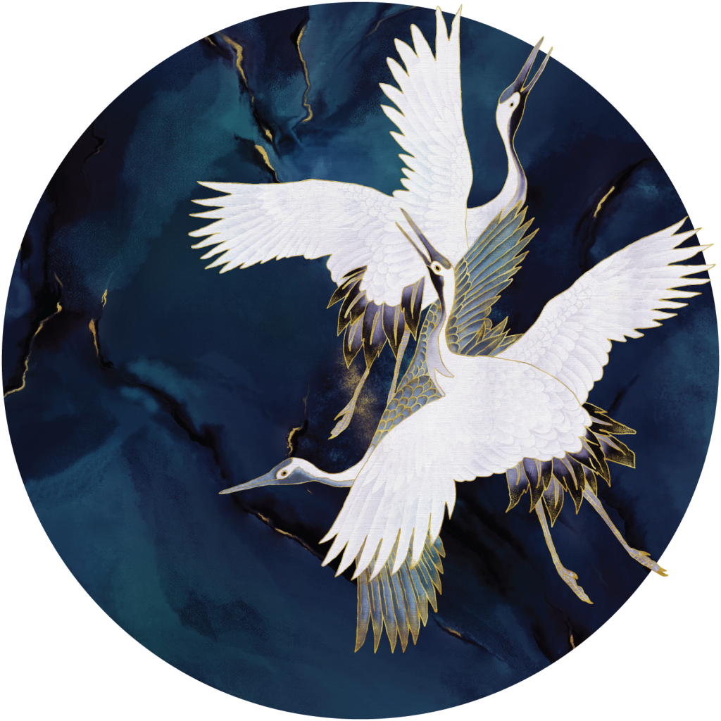 Tapeta Royal Tsuru to zestawienie koloru kremowego, królewskiego granatu i detali w barwach złota. Idealne uzupełnienie aranżacji w małych wnętrzach, pasuje do stylu boho, naturalnego, nowoczesnego i klasycznego.