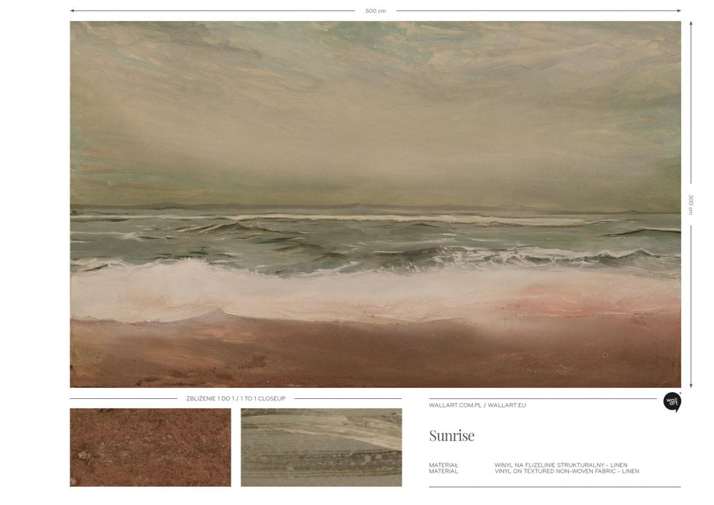Sunrise to spokojny, melancholijny krajobraz nadmorski. Widok na rozciągające się morze i delikatne fale uderzające o brzeg, w połączeniu z pastelowymi odcieniami zieleni, beżu i błękitu, tworzy atmosferę spokoju i harmonii. Doskonale nadaje się do pomieszczeń, które mają na celu wprowadzenie relaksującej, uspokajającej atmosfery. Może być idealnym dodatkiem do salonu, sypialni czy gabinetu, gdzie wprowadzi element natury i wyciszenia. Dzięki stonowanej kolorystyce, obrazek ten dobrze komponuje się z wnętrzami urządzonymi w stylu skandynawskim, minimalistycznym czy boho. Sunrise może wprowadzić do wnętrza poczucie przestronności i otwartości, co jest szczególnie cenne w mniejszych pomieszczeniach, jak również być inspiracją do stworzenia morskiego motywu przewodniego, z dodatkami w formie muszli, dekoracyjnych poduszek czy zasłon nawiązujących do kolorystyki morza.